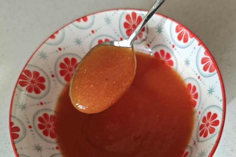 - Добавяме лимонената киселина и бъркаме докато мармалда стане готов. Това се проверява като ако прекараме пръст по лъжицата, следата остава чиста и мармалада не я закрива.